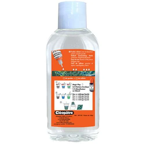 Cléopâtre Magic’Plop is a silicone oil specially developed for acrylic pouring. It is great for cell formation and generates many large cells. It is the perfect medium for creating beautiful artwork from acrylic paint.