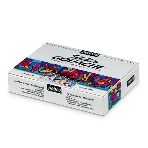 The Pébéo Gouache Studio Starter Set contains 6 x 20ml tubes of the basic colours. These paints are water-soluble and are suitable for many different supports.