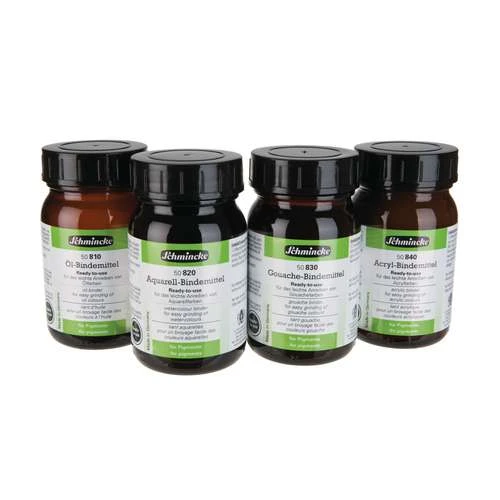 Schmincke acrylic binder, light-resistant, non-yellowing, water-soluble, drying to a glossy, transparent, waterproof finish, and used when grinding acrylic paints, to achieve thick, glossy colours.