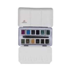 The Winsor & Newton Cotman Painting Box Plus Set is an elegant polished black set with a modern rounded design. It contains 24 half pans, 1 Series 111 brush size 3 and an internal, clip-on palette.
